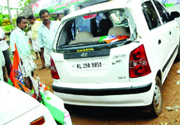 കായംകുളം പാര്ക്ക് ജങ്ഷനില് എല്.ഡി.എഫ്.-യു.ഡി.എഫ്. പ്രവര്ത്തകര് മുദ്രാവാക്യം വിളിച്ച് നടത്തിയ ശക്തിപ്രകടനം വാക്കുതര്ക്കത്തിലെത്തുകയായിരുന്നു. പോലീസെത്തി പ്രവര്ത്തകരെ അടിച്ചോടിച്ചു. പിന്നീട് കോണ്ഗ്രസ് ഓഫീസിനുനേരെ കല്ലേറും യു.ഡി.എഫ്. സ്ഥാനാര്ഥി എം. മുരളിയുടേതടക്കമുള്ള പ്രചാരണവാഹനത്തിനുനേരെ ആക്രമണവുമുണ്ടായി. കോണ്ഗ്രസ് ഓഫീസിനുമുന്നില് സ്ഥാപിച്ച കേന്ദ്ര തിരഞ്ഞെടുപ്പുകമ്മിറ്റി ഓഫീസിലേക്ക് കല്ലെറിഞ്ഞ് ലൈറ്റ് തകര്ത്തു. പരിക്കേറ്റ കായംകുളം പോലീസ്സ്റ്റേഷനിലെ ഹെഡ്കോണ്സ്റ്റബിള് സുരേഷ്, സി.പി.എം. ഏരിയാ കമ്മിറ്റിയംഗം വാസുദേവന് ഉണ്ണിത്താന്, എല്.ഡി.എഫ്. പ്രവര്ത്തകരായ നൗഫല്, ഹാഷിംസേഠ്, എന്നിവരെ ആസ്പത്രിയില് പ്രവേശിപ്പിച്ചു. കെ.സി.ടി. ബസ്സിനും രണ്ടു ബൈക്കുകള്ക്കും ആക്രമണത്തില് നാശനഷ്ടമുണ്ടായി.